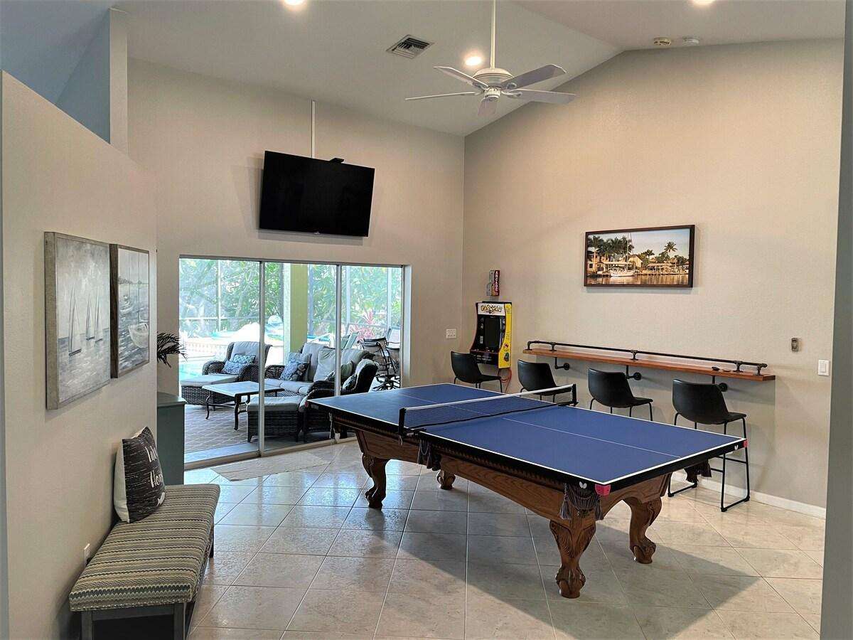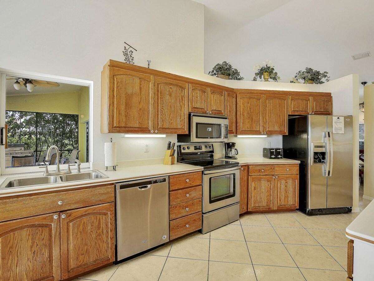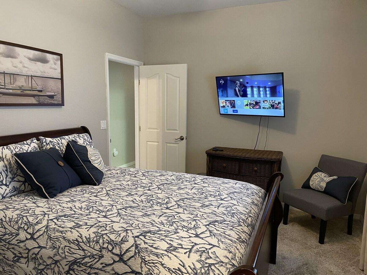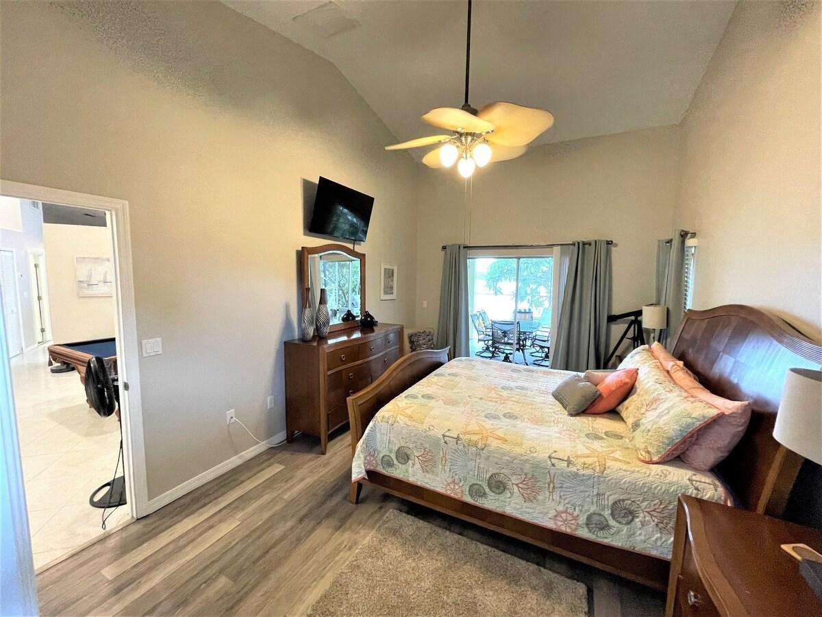 The double door entrance leads immediately to the large Formal Living Room and Dining area. Furnished with comfortable sofas and a work desk, this is a great spot to hang out with the family or a quiet spot to read. Sliding glass doors let in lots of light and provide a view of the pool deck area. Leading from the Living Room is the Kitchen area, Family Room and Breakfast Nook. The Breakfast Nook enjoys views of the pool area and out towards the dock and lake. The Family Room is comfortably furnished with 3 sofas plus cable TV. The Kitchen is well equipped with stainless steel appliances and breakfast bar seating. The Master suite is spacious and upscale in its' appointments. It comes furnished with a sumptuous King bed and cable TV. There are also sliding doors to the pool area. The adjacent Master Bathroom has a separate large walk in shower, huge 2 person sunken bathtub and his and her basin area. The 3 further guest bedrooms continue the theme of space and comfort. Guest Bedroom One is furnished with a queen bed. Guest Bedroom Two is ideal for younger members of the party and furnished with 2 full beds and cable TV. Guest Bedroom 3 is furnished with a twin bed and full bed plus cable TV. The Guest bedrooms share a bathroom equipped with bath tub/shower, basin and toilet. The bathroom also has a door to the pool area so to provide convenient access for all your guests.