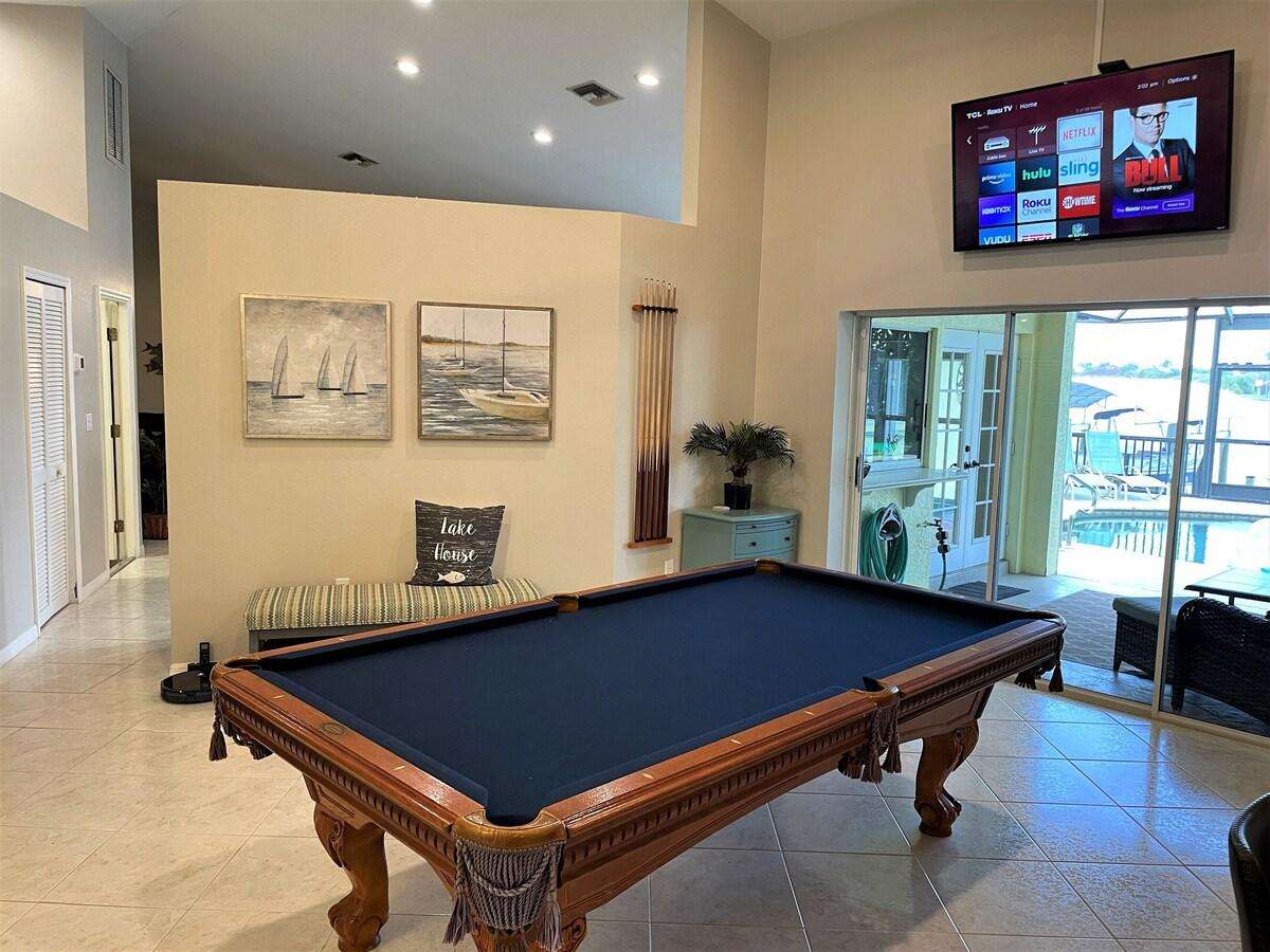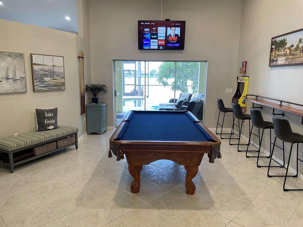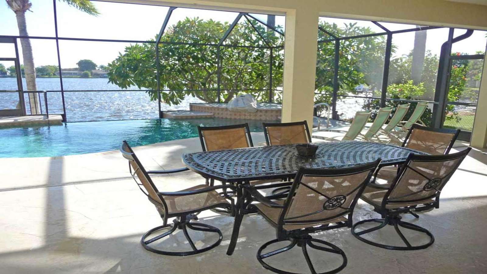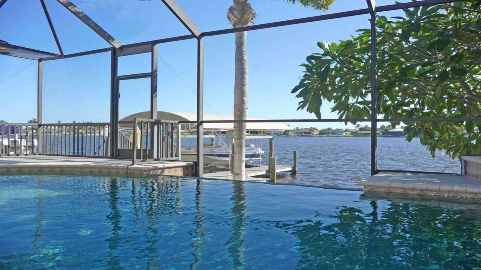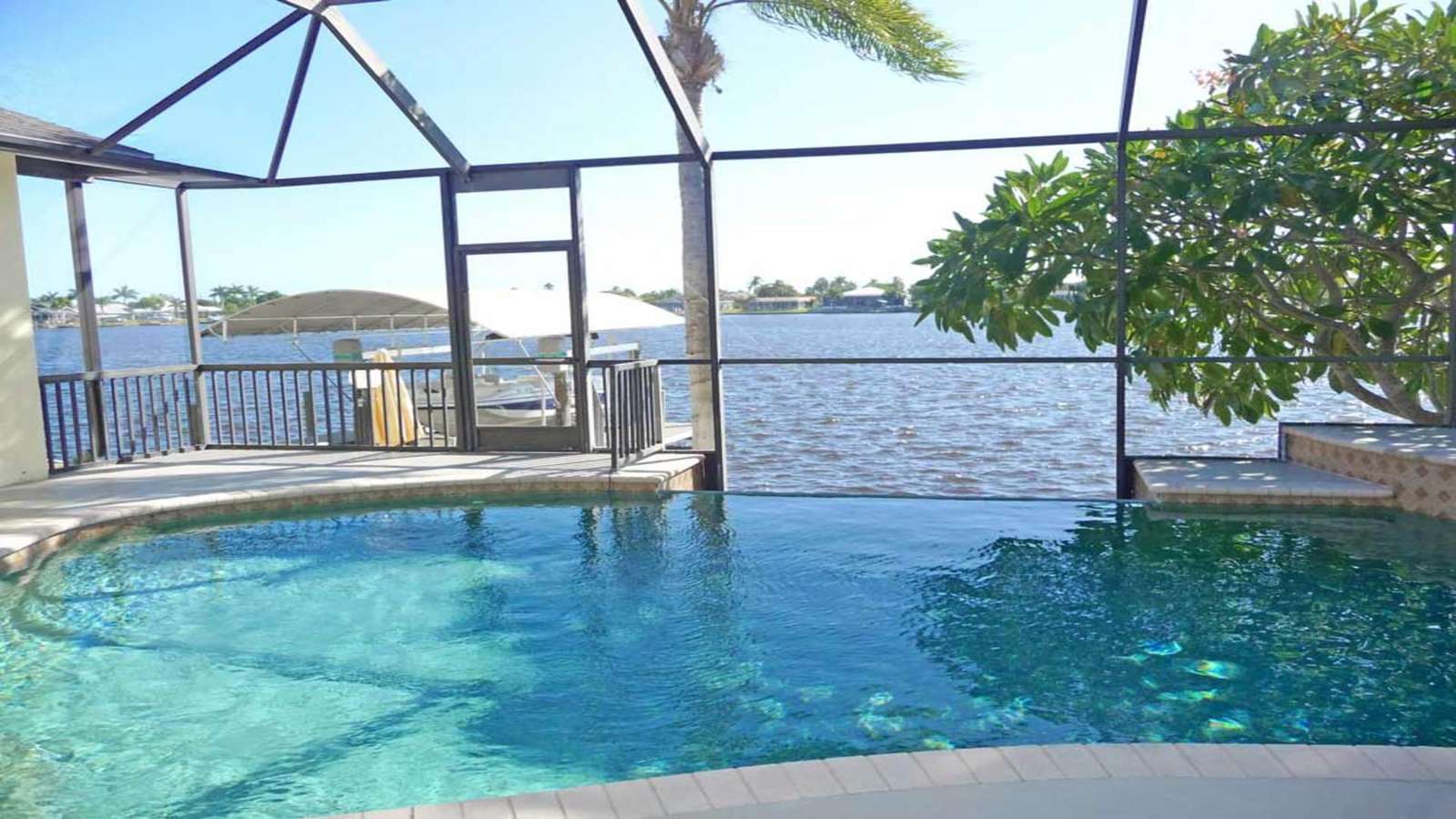 Enjoy some the very best waterfront views in Cape Coral. Located in the upscale South West neighborhood of 8 Lakes and close to the popular Tarpon Point Marina. This home features 2 large living areas, 4 very spacious bedrooms, 2 bathrooms and a stunning outdoor pool area. Step outside and enjoy the sparkling vanishing edge pool, outdoor dining area or fish from your private over-sized dock. This home is a perfect choice for guests looking for a convenient South West location and a spacious residence to relax into.
