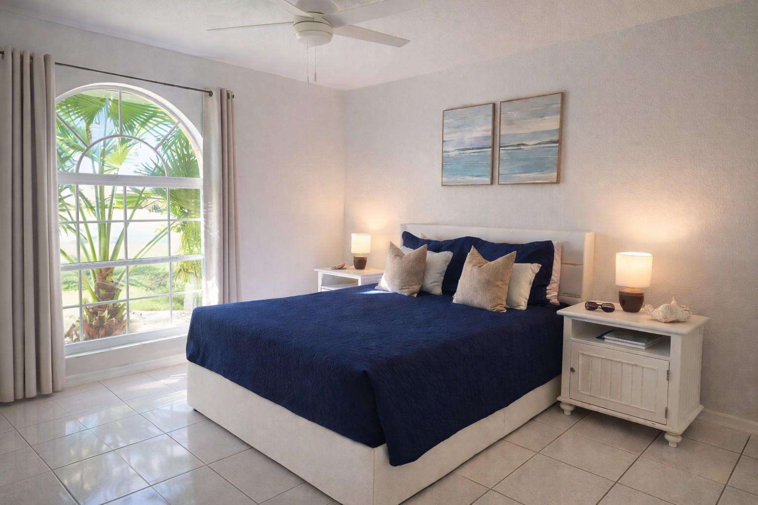 The guest bedrooms and bathrooms are located on the other side of the house in a split plan design so to provide the ultimate in privacy for all guests. Guest Bedroom #1 features a King Size Bed with Smart TV + ensuite bathroom with pool access. This layout provides the added bonus of being an ideal choice for 2 couples to share. Guest Bedroom #2 has a Queen Bed + Smart TV. The third Guest Bathroom is adjacent to the Guest Bedrooms and has a Bath Tub/Shower combo plus basin and toilet.