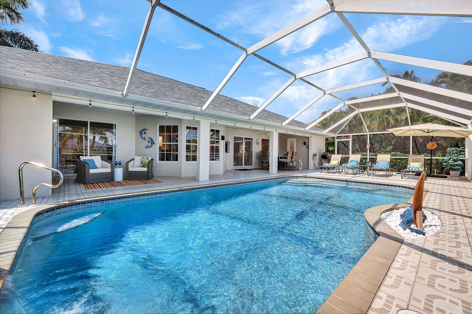 Villa Helios is the perfect choice for guests seeking a tasteful luxury residence with huge private outdoor pool deck and living space, combined with one of Cape Coral's best waterfront neighborhoods.