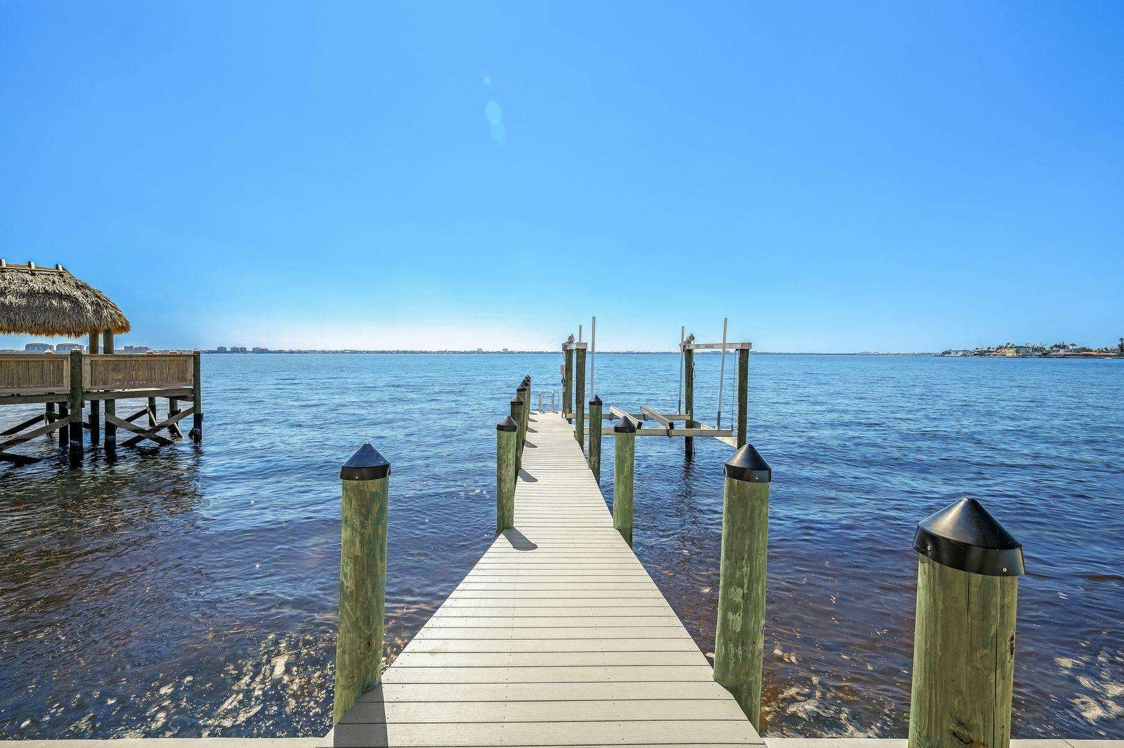 This home has a substantial pool deck for family fun and entertaining. The oversize south facing pool area has a large covered area for dining and entertaining whilst watching the sunset over the river. There are also multiple areas to sunbathe on loungers either in the direct sun or in shade under the covered lanai area. For added convenience there is a powder room bathroom pool side so no need to step indoors with wet feet! On stepping down to the private dock, you will appreciate the stunning riverfront views as you gaze out over 1.5 miles of waterfront which is how wide the river is at this point.