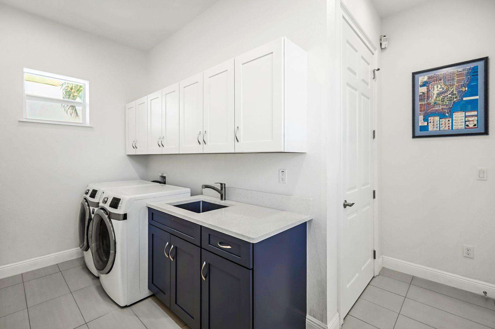 The Master Suite is spacious and upscale in its' appointments. It comes furnished with a sumptuous King size bed and sliding doors to the pool area. The adjacent Master Bathroom completes the Master area of the home. The Master Bath has a separate large walk in shower, free-standing bathtub and his and her basin area.