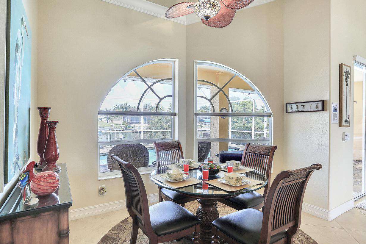 There is also an additional lounging with 2 outdoor lounge chairs; an ideal spot to enjoy a cocktail at sundown! With outdoor waterfront living and relaxation so high on the priority list in sunny Cape Coral, the home is also equipped with a gas barbecue. The lushly landscaped grounds and private dock area with separate seating area and gas fire pit are the finishing touch to your own piece of paradise that Florida is famous for and provides privacy and a feeling of tropical tranquility.