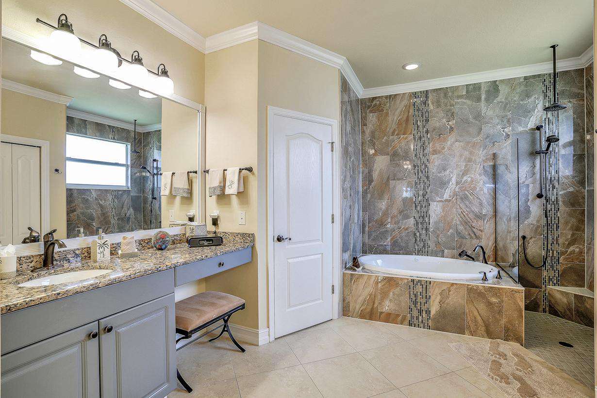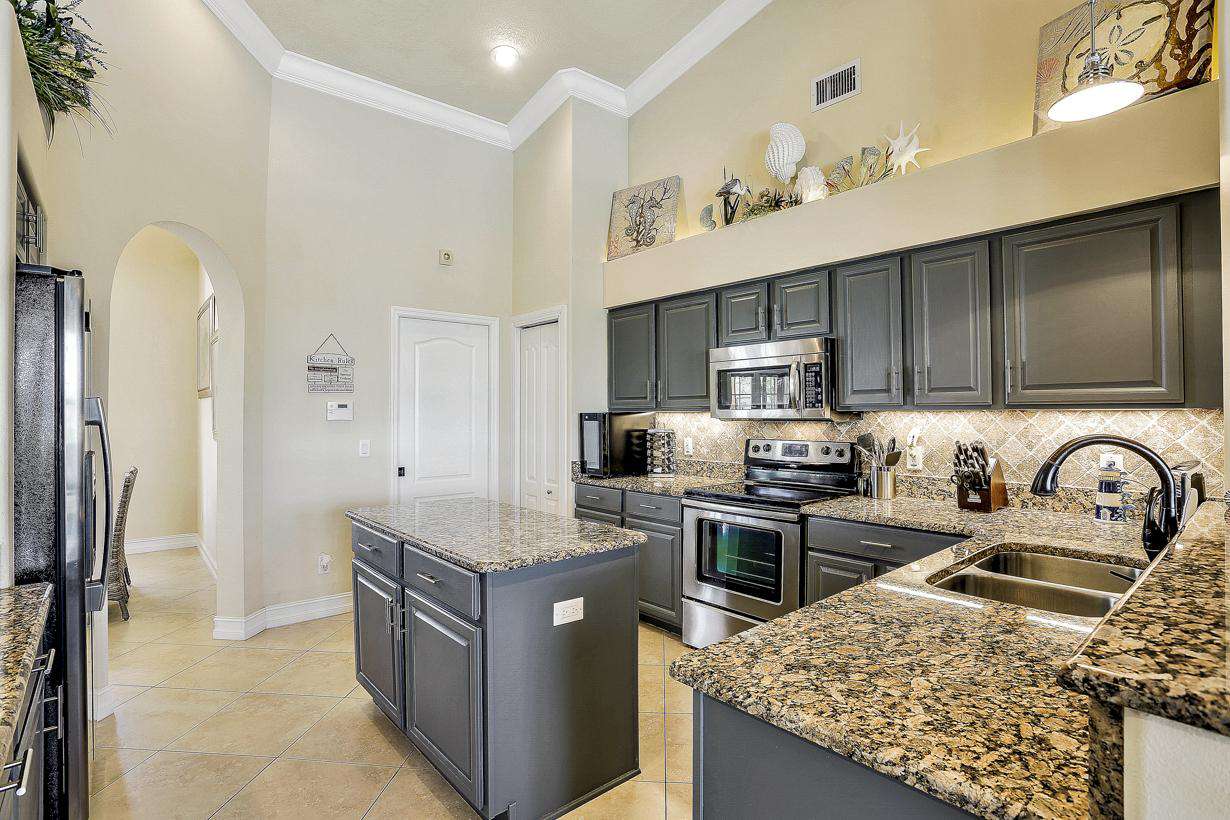 Overlooking the living area is the large gourmet kitchen with stainless steel appliances, granite worktops and island. In addition to these areas, there is a breakfast nook overlooking the pool area, formal dining area and office area to complete the main open plan living space. The bedroom layout is split plan so to provide the utmost in privacy for all guests. The Master Bedroom comes complete with king size bed, 60" cable TV and private Master Bathroom. A further 2 guest bedrooms on the other side of the home each feature a king size or queen size bed and cable TV.